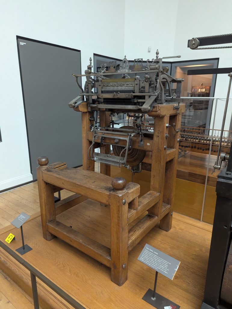 In the museum pamphlet and on the website, the section of the museum I ended up spending the most time in was titled “materials”, which does not really say much about what is there. Therefore, I was pleasantly surprised to see the amount of space given to textile production. Especially the weaves and the transition from fully manual to more and more automatic weaves made me burst of joy. It is weird how weaves can get you that close to crying:) Somehow, there were no people in these rooms while I was there, so I got to enjoy it all to myself. The museum had so many places to sit, so when I got to these rooms, I was able to rest and enjoy just looking at the machinery from a distance before walking around to read about it all.