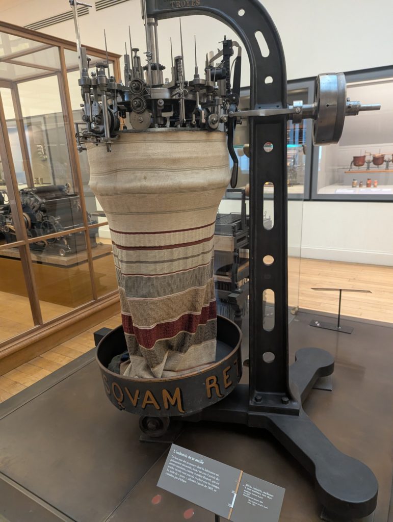 I spent the past weekend in Paris and was very inspired by the Musée des Arts et Métiers. It is a museum of the development of various types of machinery, cameras, trains, scientific instruments, and – what I found most interesting – the section of the museum full of knitting machines and weaves.